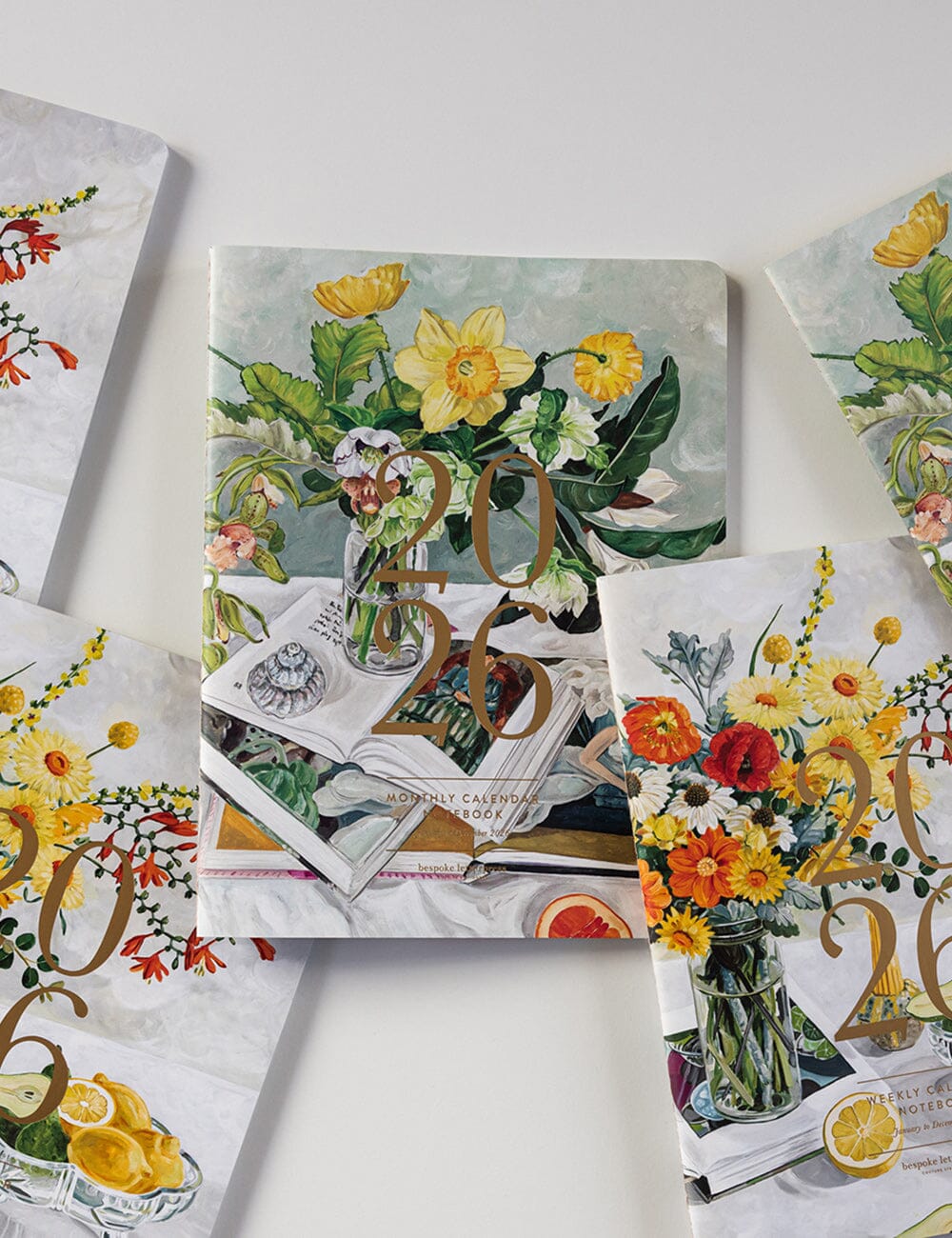 Experience the perfect harmony of elegance and functionality with our 2026 Monthly Calendar Notebooks. Each notebook seamlessly blends a beautifully crafted monthly calendar with generous note-taking space. Crafted from exquisite, sustainable materials and featuring original artwork on every page, these notebooks offer the ideal combination of luxury and practicality.