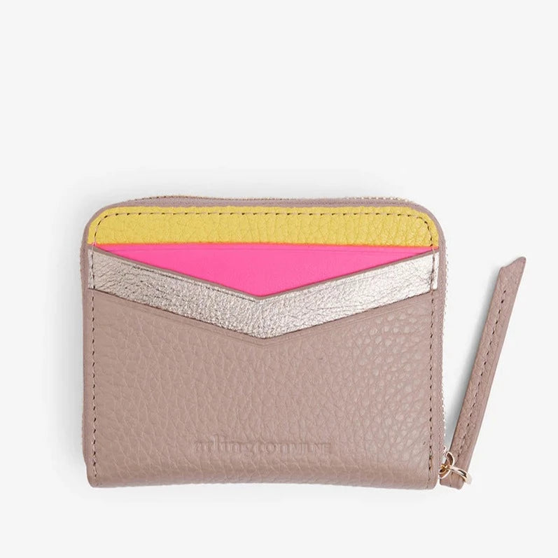 These little wallets are so fun. In a fabulous spot suede, pink and tan combo they are the perfect little purse to fill with your coins and cards and then throw it in your handbag or clutch. Great for business cards as well. Avoid having a huge wallet filled with cards when you can just enjoy this little beauty!