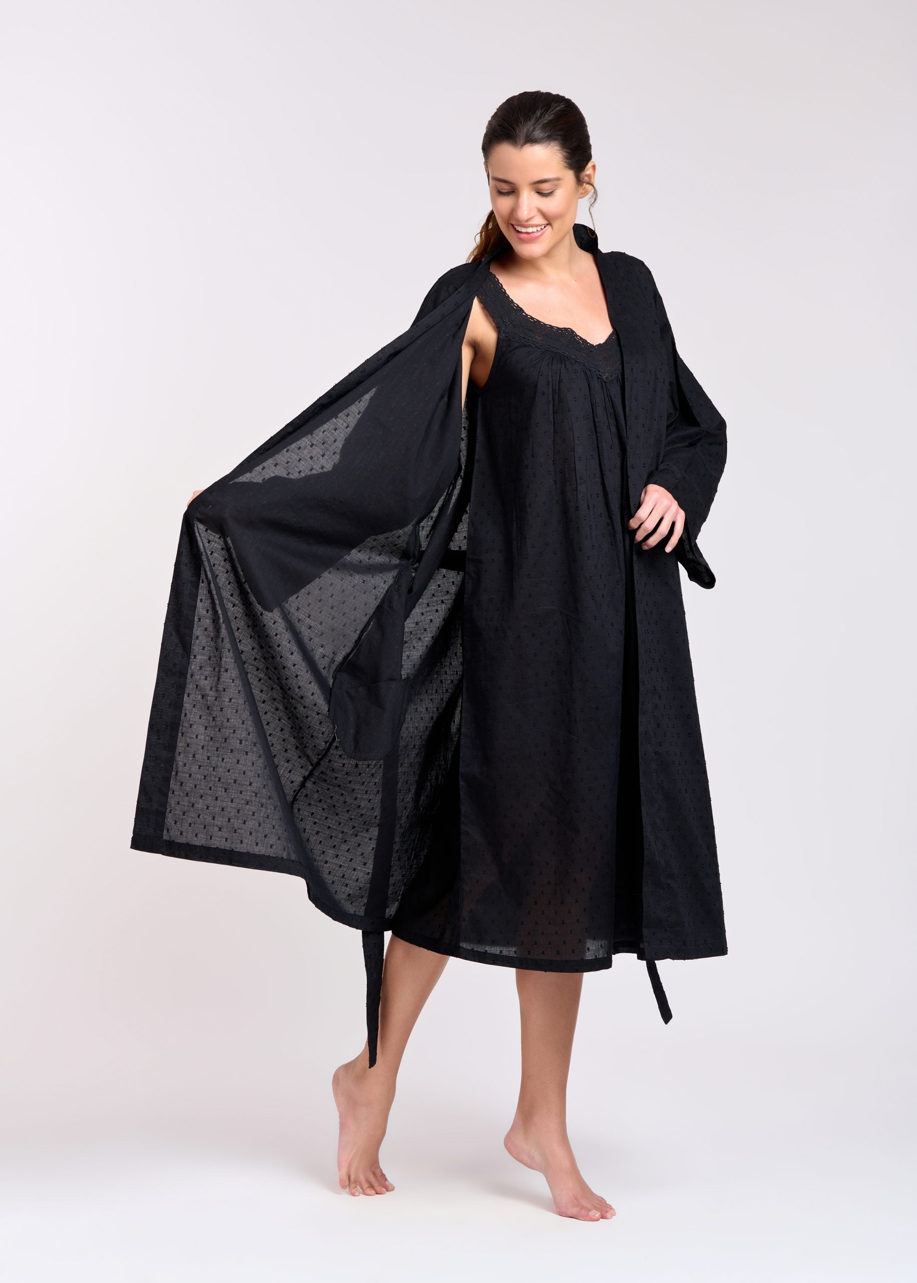 We just love these gorgeous cotton robes in a variety of prints. This one comes in a black hail spot pattern and would look lovely over the black nightie.