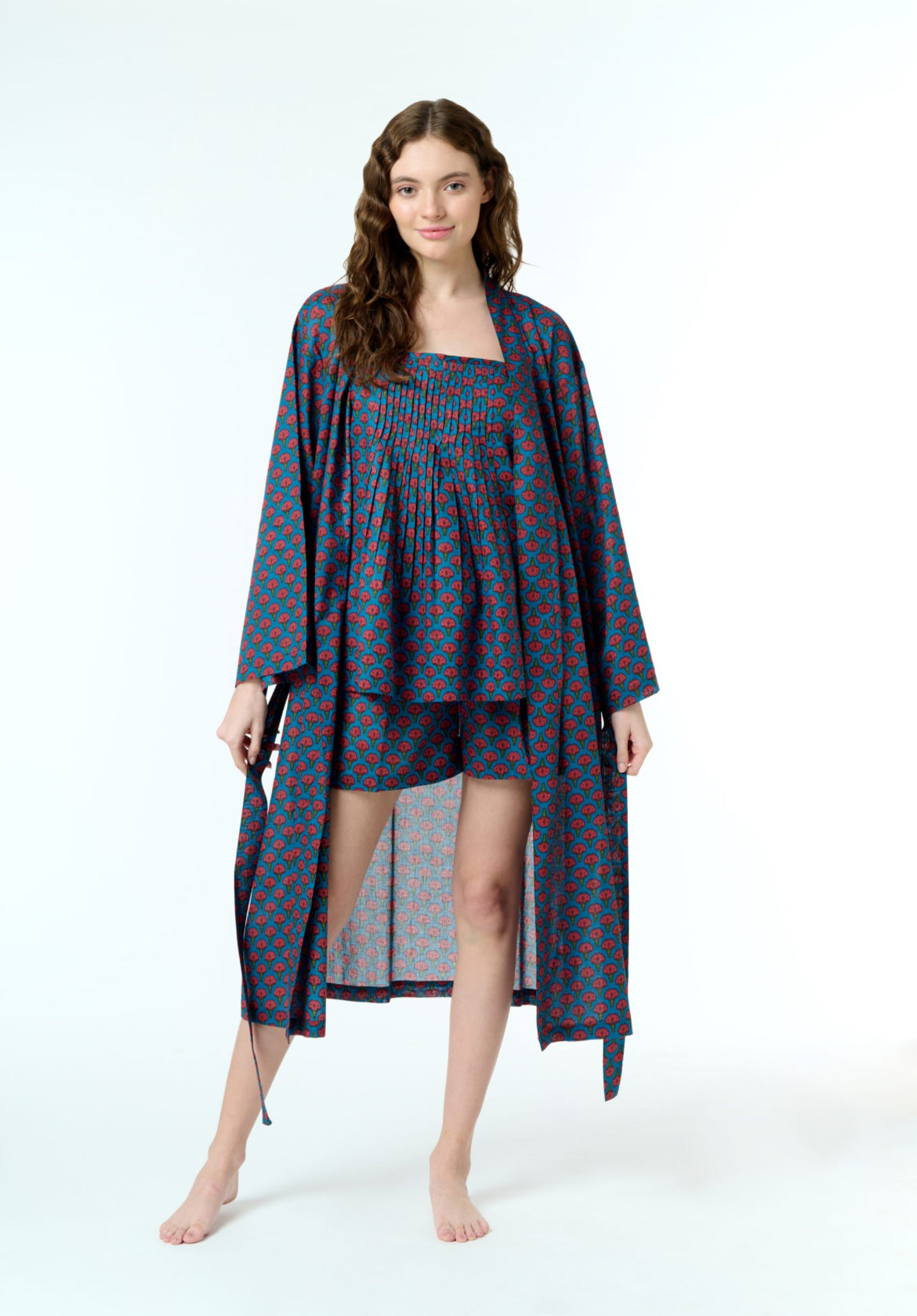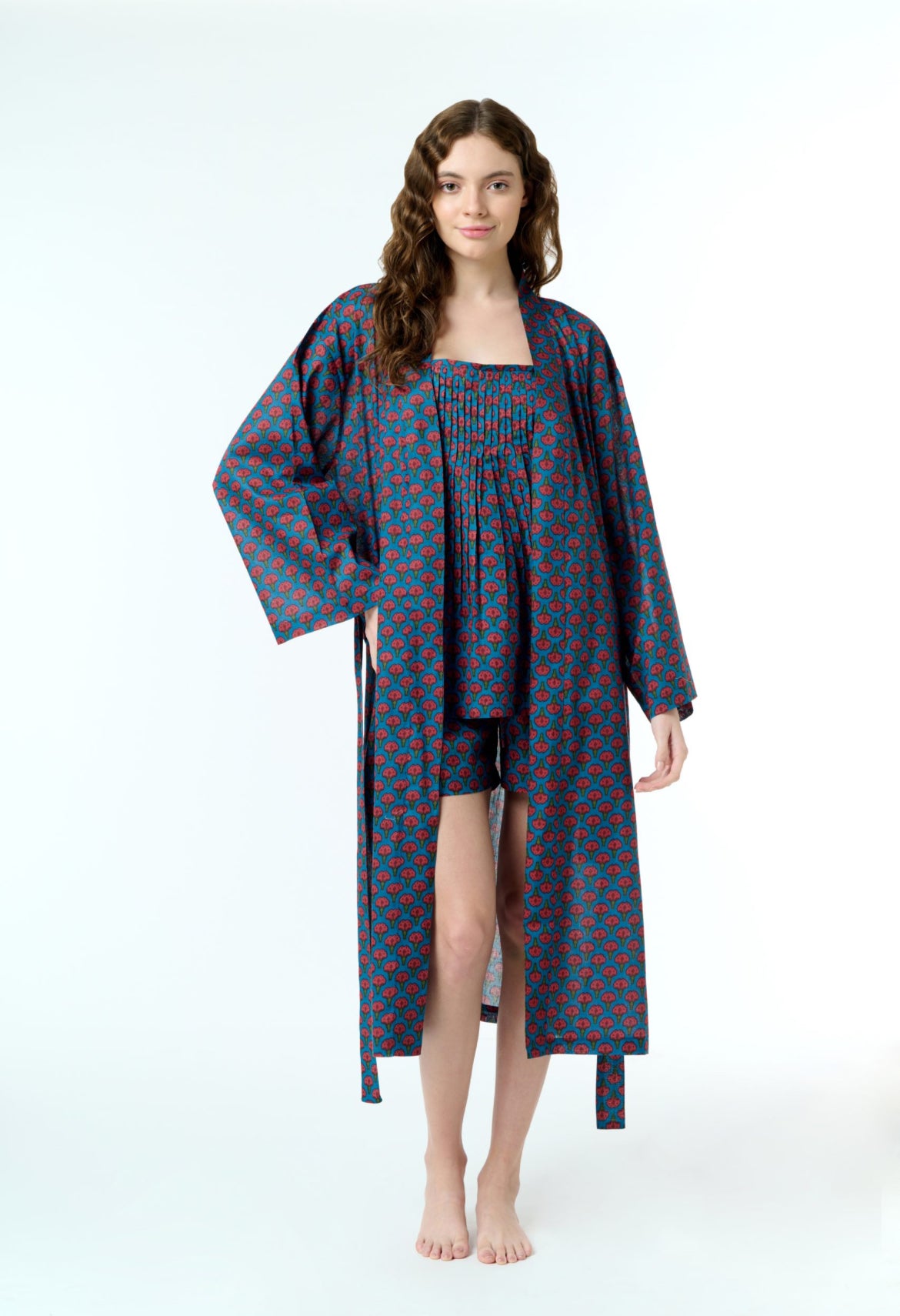 Hand block printed dressing gown