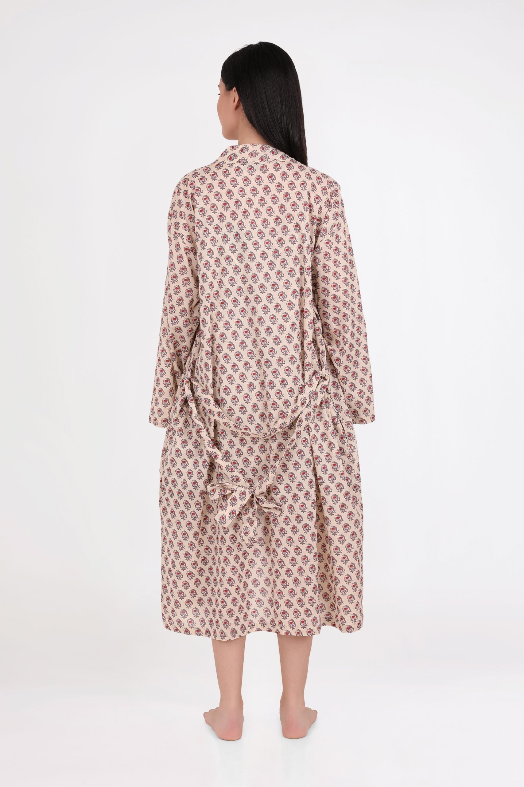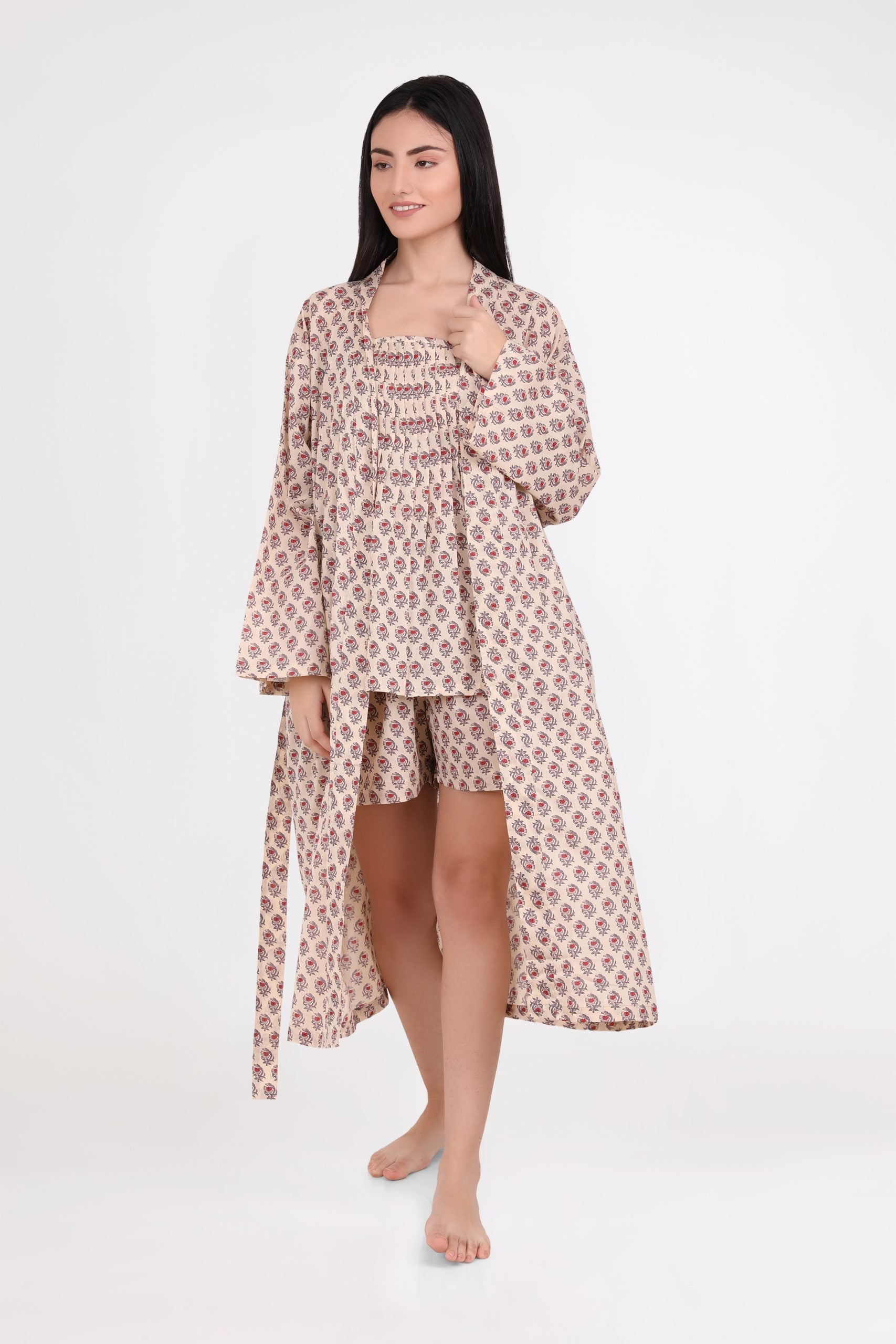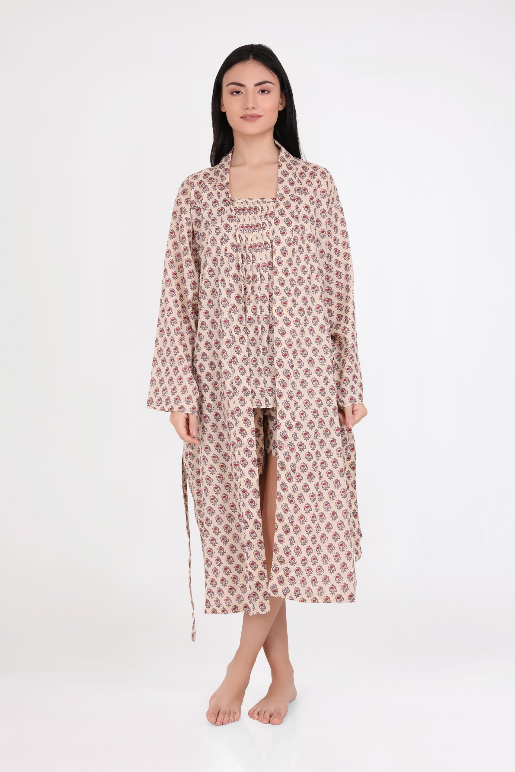 We just love these gorgeous cotton robes in a variety of prints. This one features a lovely red floral pattern on a cream background and would look lovely matched with the nightie or pj set.