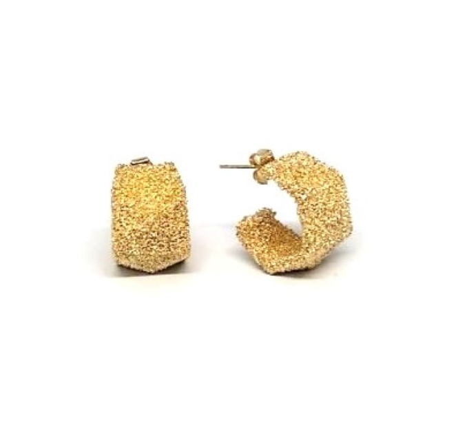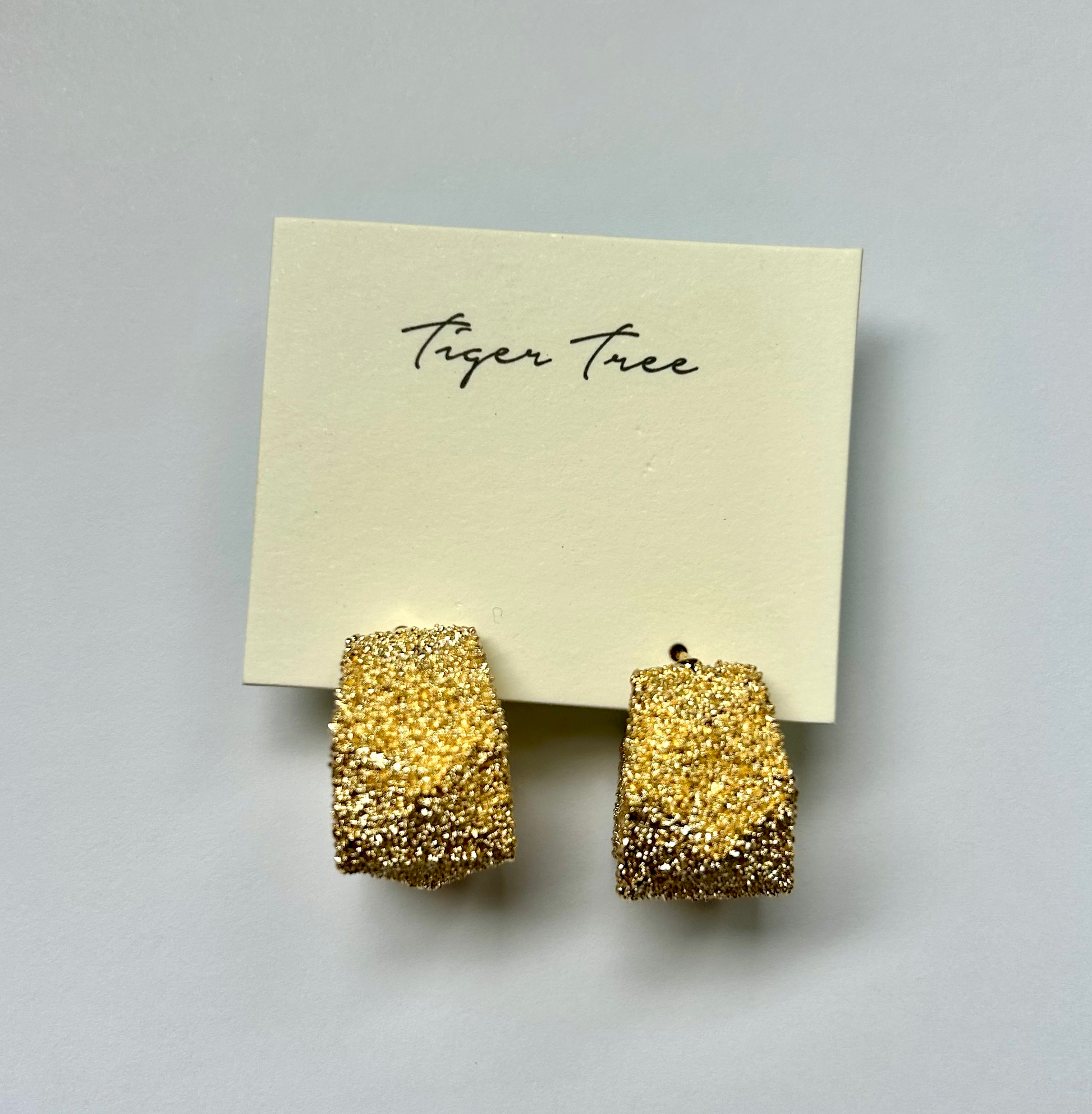 Make a statement with these bold, sculptural hoops. Crafted from recycled brass and plated in gold, they feature a modern, chunky silhouette with hypoallergenic posts for all-day comfort. Lightweight yet impactful, they’re the perfect finishing touch to any look.