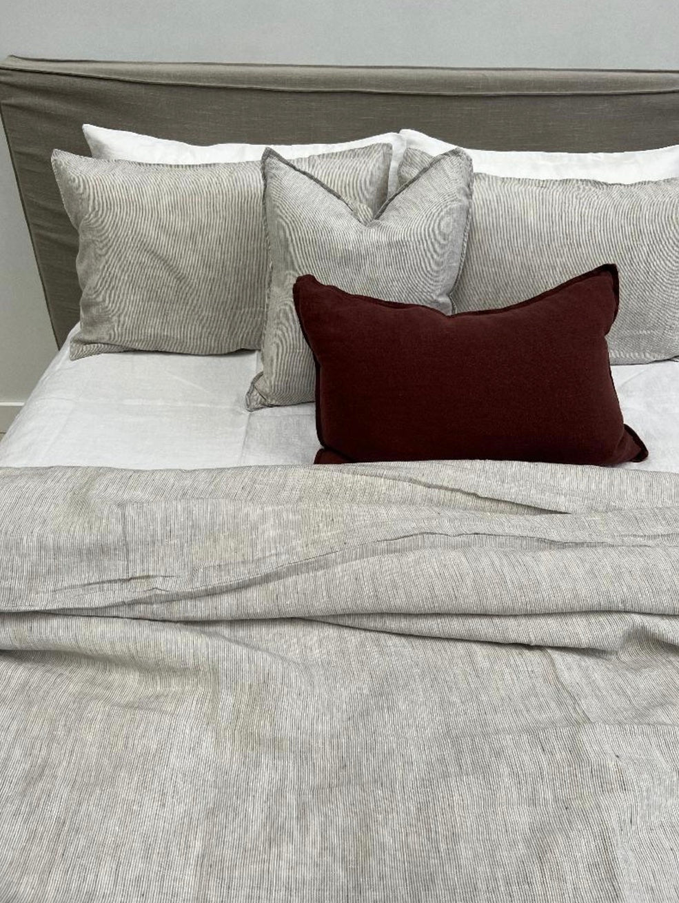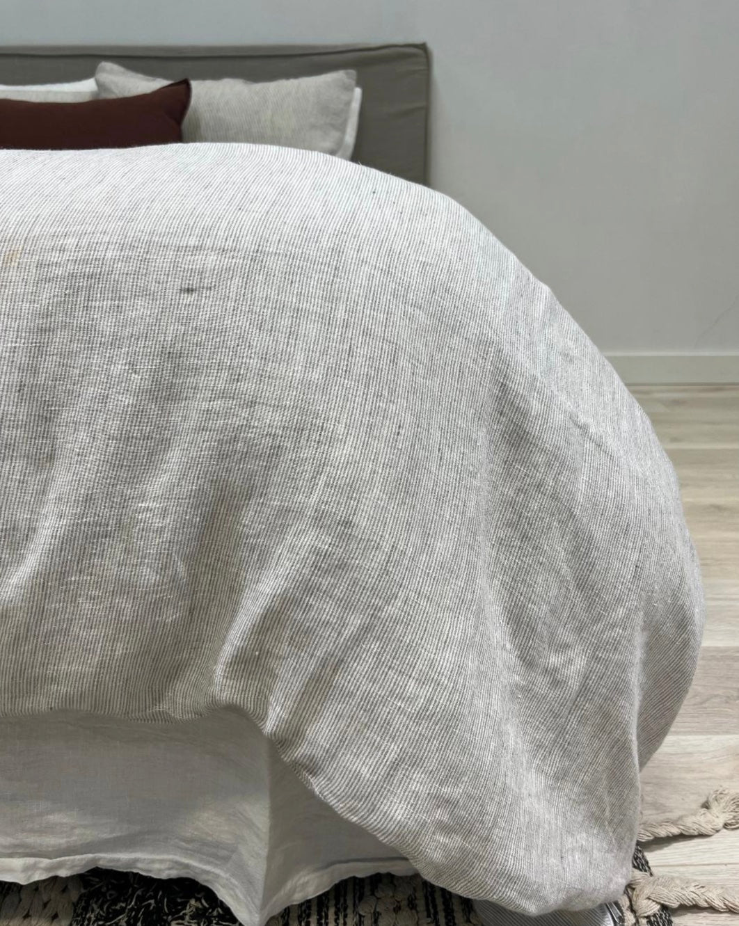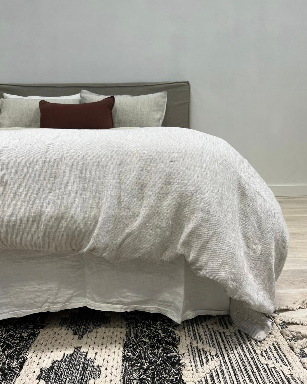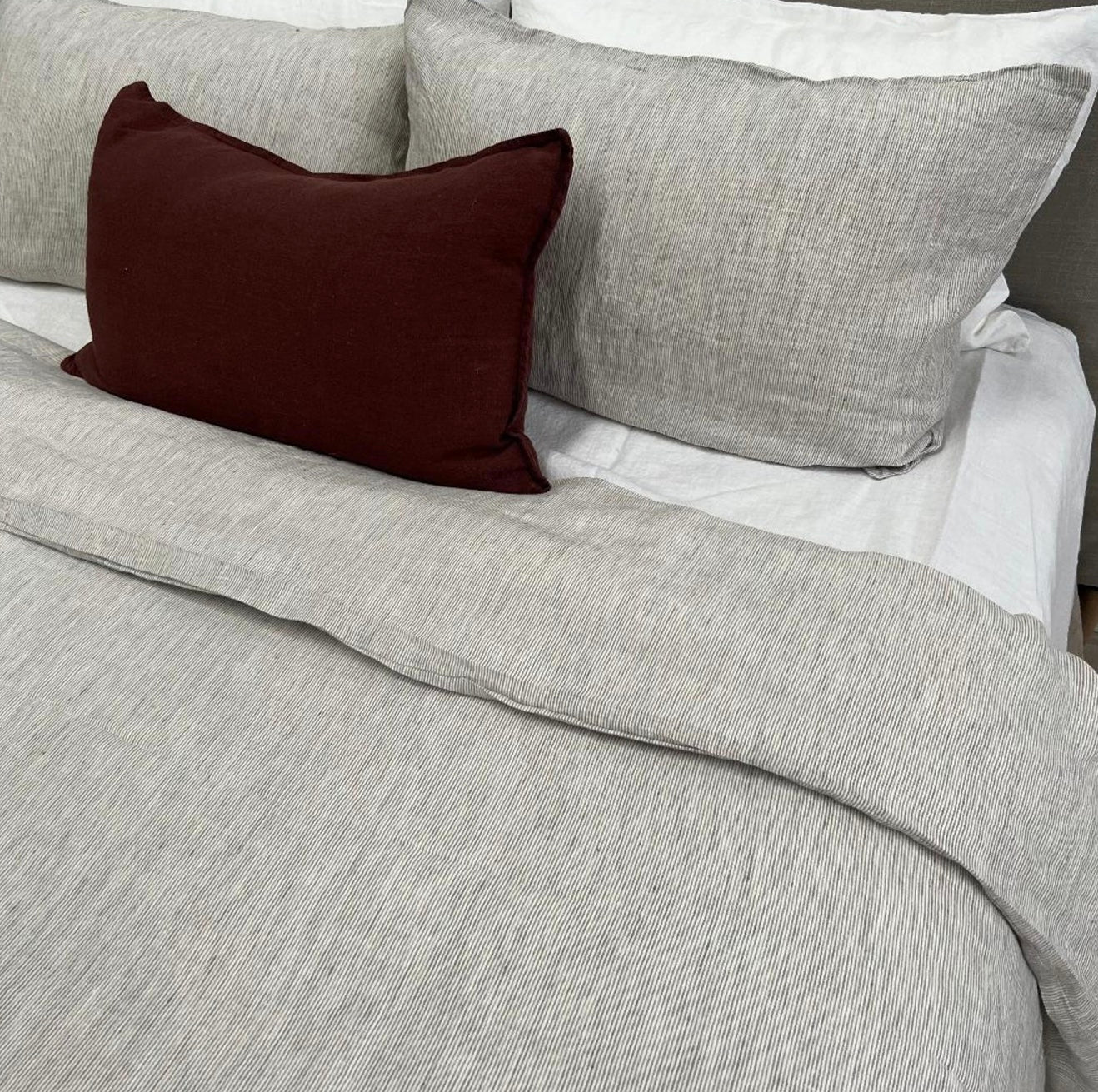 A variation on our hugely popular blue and natural striped linen quilt covers, these linen quilt covers in grey pinstripe come with a zipper at the bottom for ease of removing the quilt. We adore this and hope you do too!
