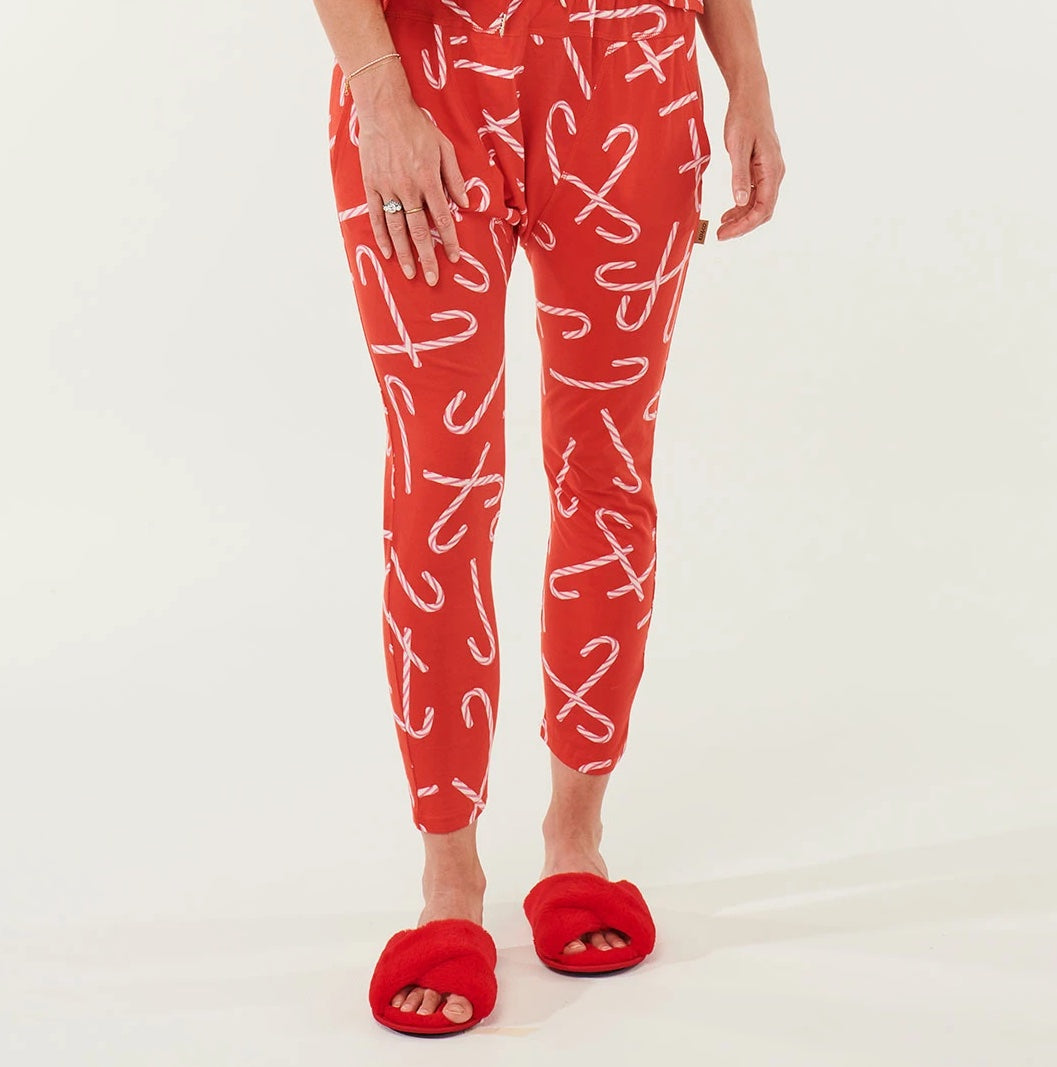 Slip into the softest red cherry slippers in town. Cross over top slide on slippers with a rubber sole makes for happy cosy toes.
