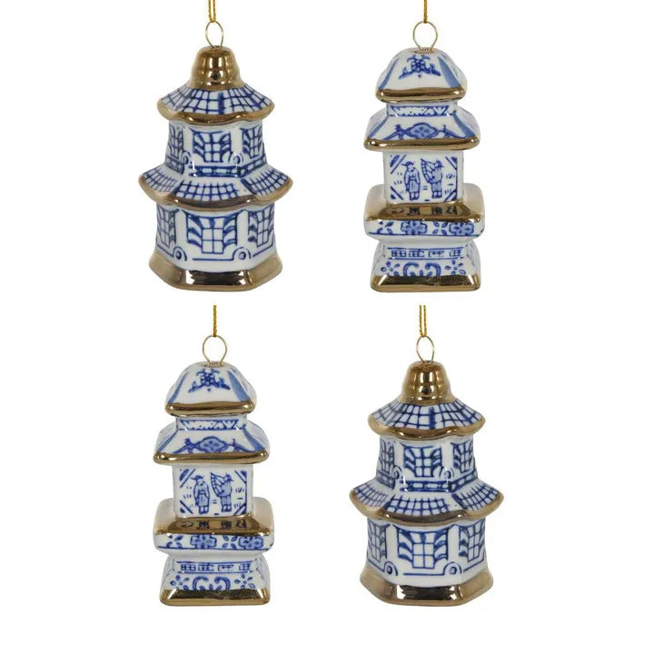 Chinoiserie Pagoda Hanging Ornaments Box of 4
