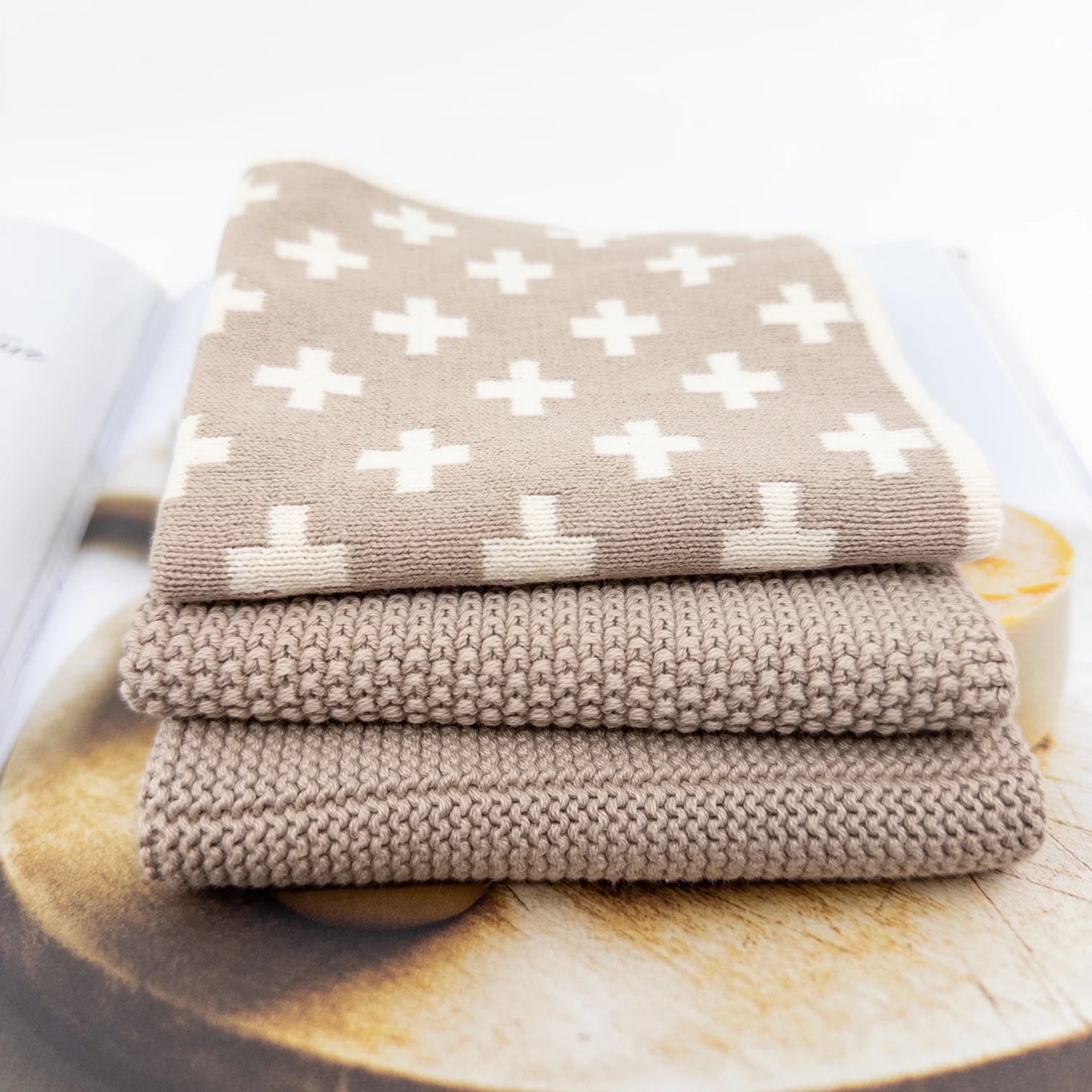 Finely knitted from organic cotton our cloths are absorbent and super functional as well as adding a splash of style and colour to your kitchen. The perfect alternative to disposable synthetic dish cloths.