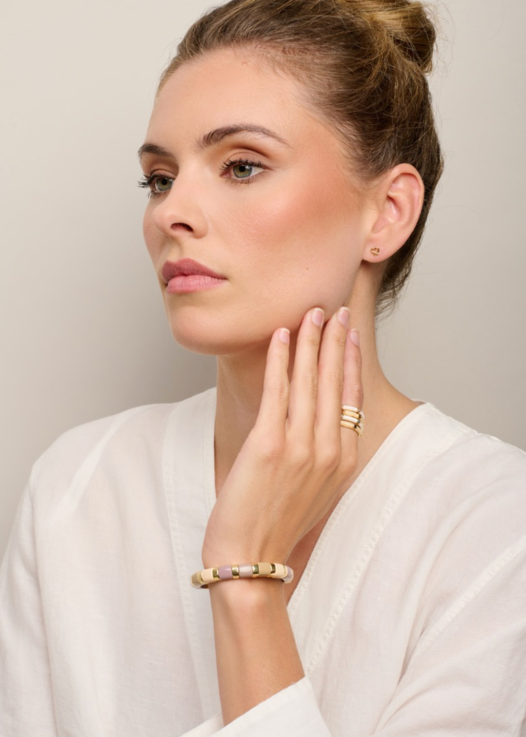 Add a pop of colour to your outfit with this cute Earth Enamel Bracelet. Featuring a combination of earthy tones with gold accents, this stretchy bracelet is perfect for stacking or wearing solo.