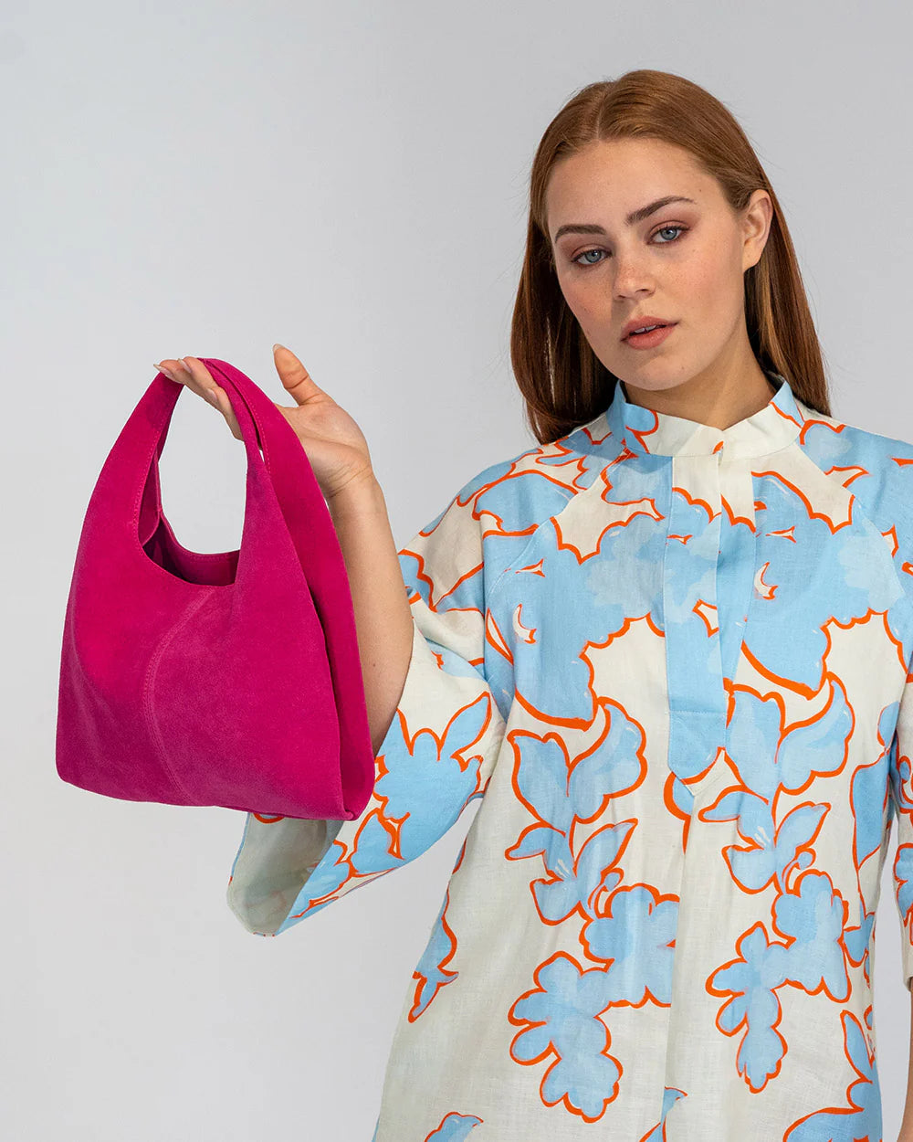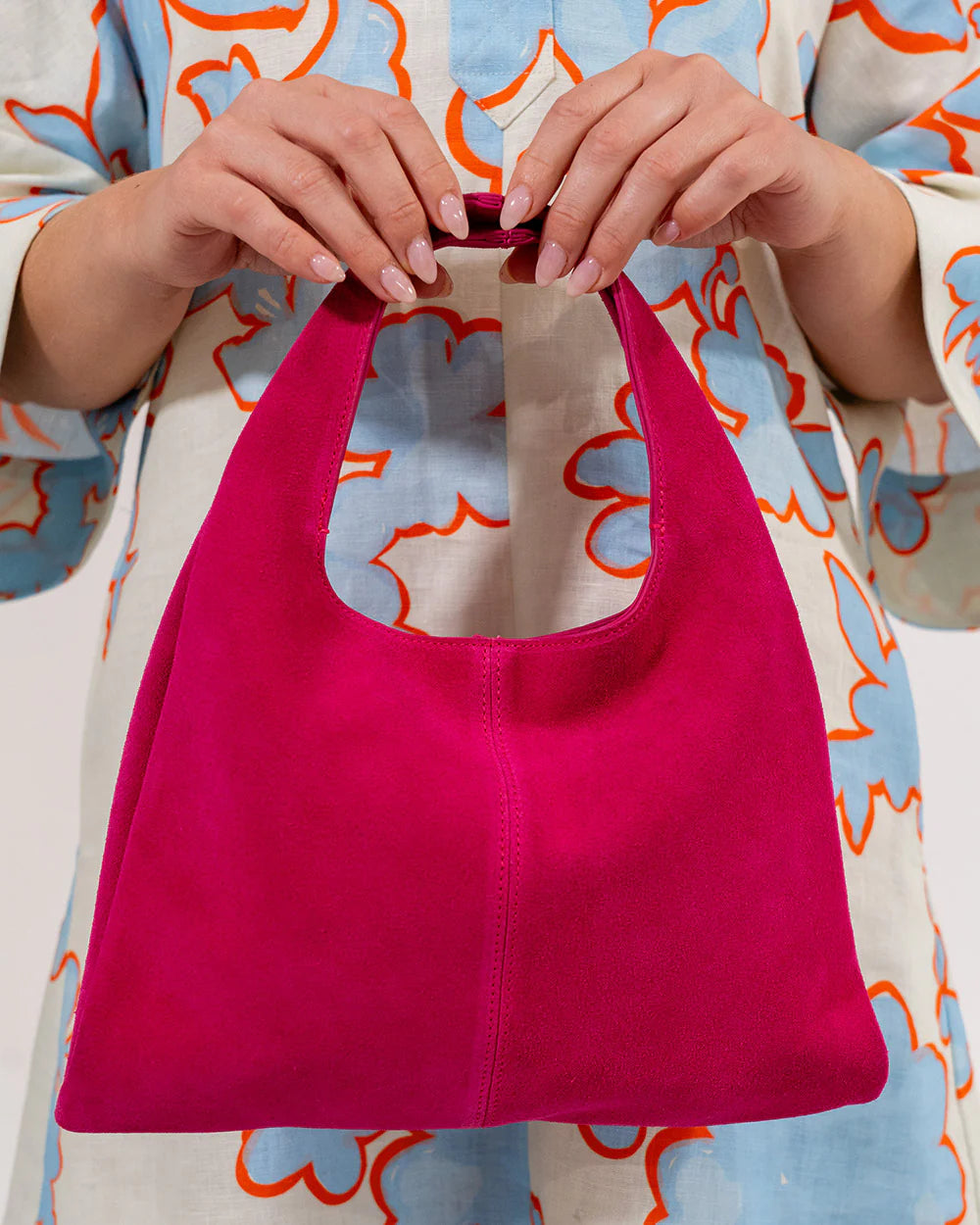 Crafted from buttery premium suede, the Emery Tote combines understated luxury with everyday practicality. Its unlined interior creates a soft, natural silhouette, while a hidden magnetic closure keeps your essentials secure. A removable crossbody strap adds versatile styling options, letting you carry it by hand, over your shoulder, or across the body for effortless elegance.