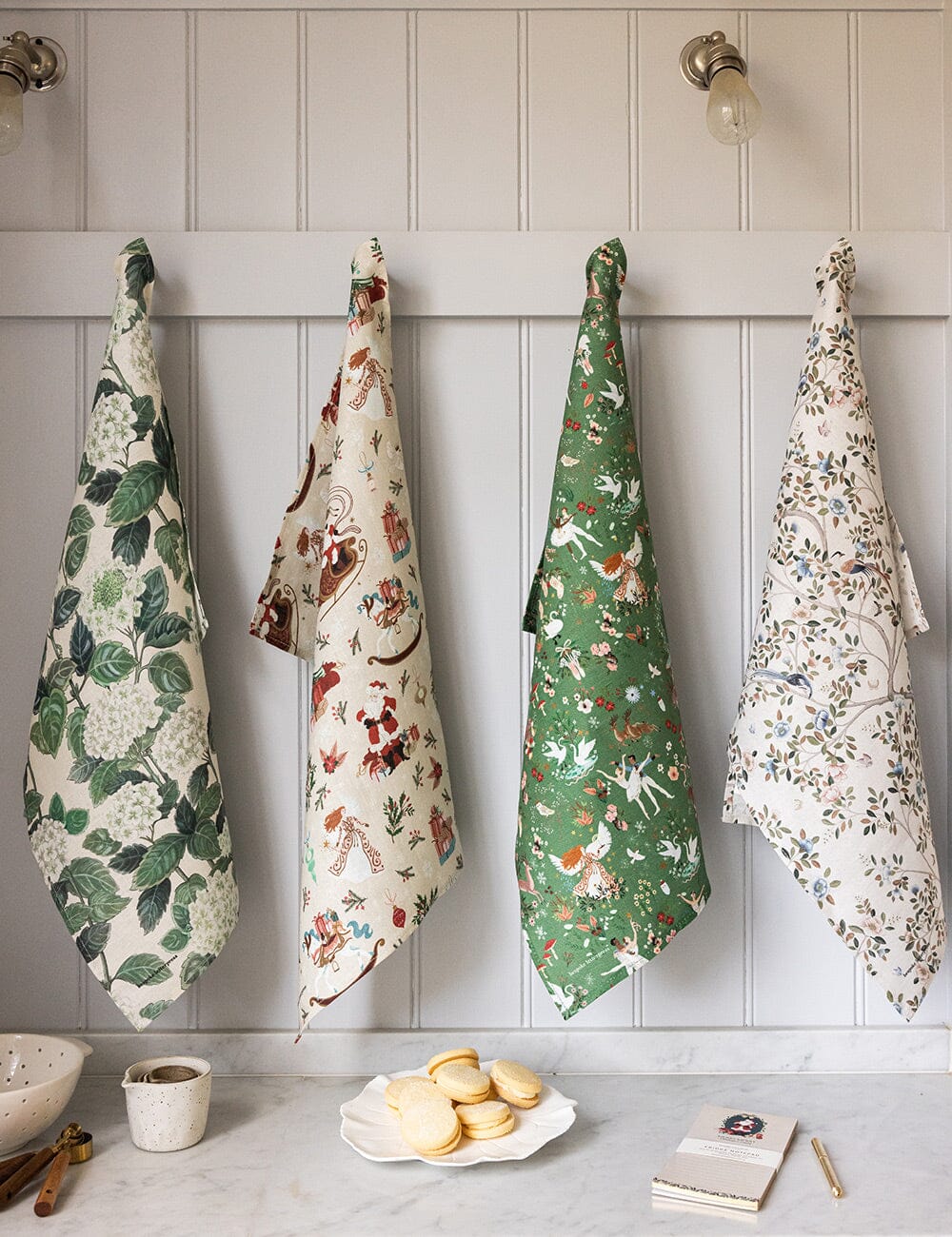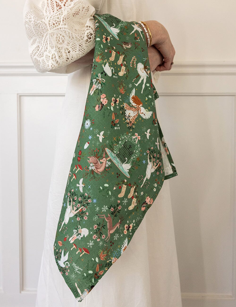 An Enchanted Christmas Linen Tea Towel. The most beautiful Christmas artwork that would make a wonderful gift as is or wrapped around a bottle of champagne.