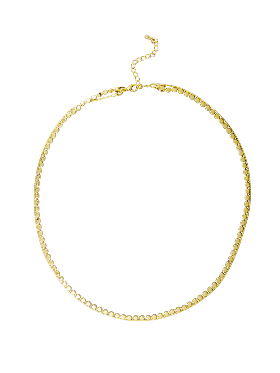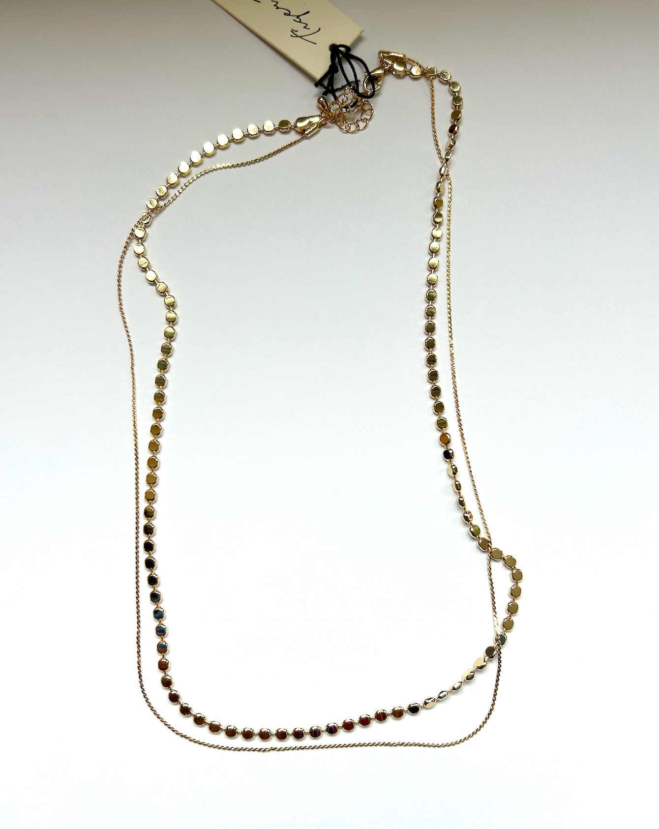 Upgrade your style with this elegant double chain necklace. Crafted from recycled brass and it features a fine chain with a second dot design chain, this necklace will surely make a statement.
