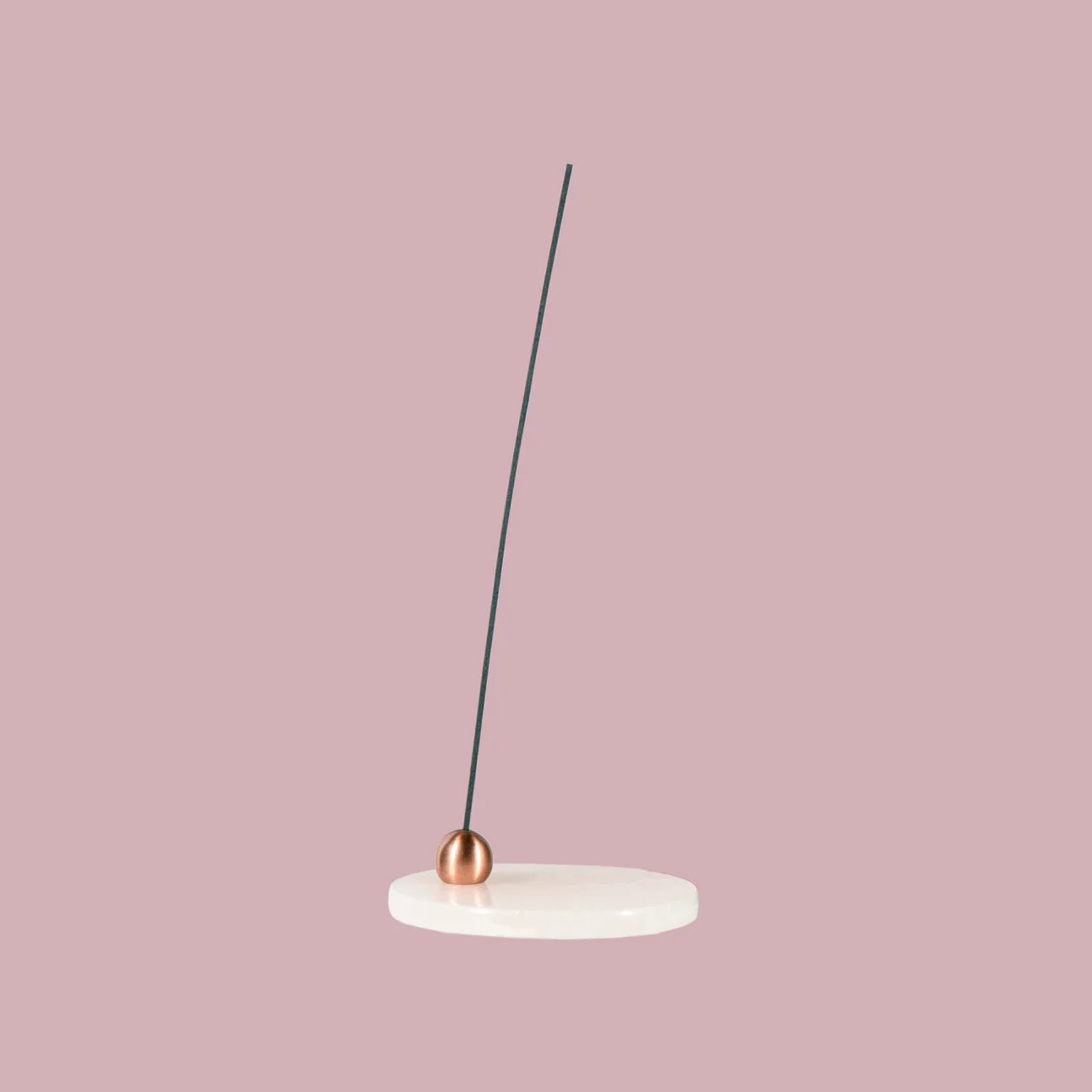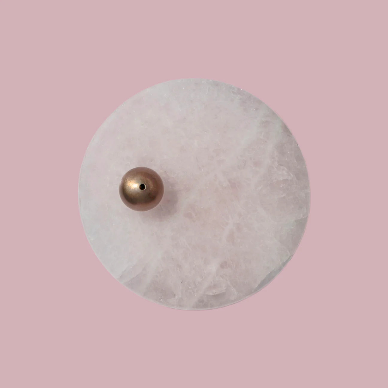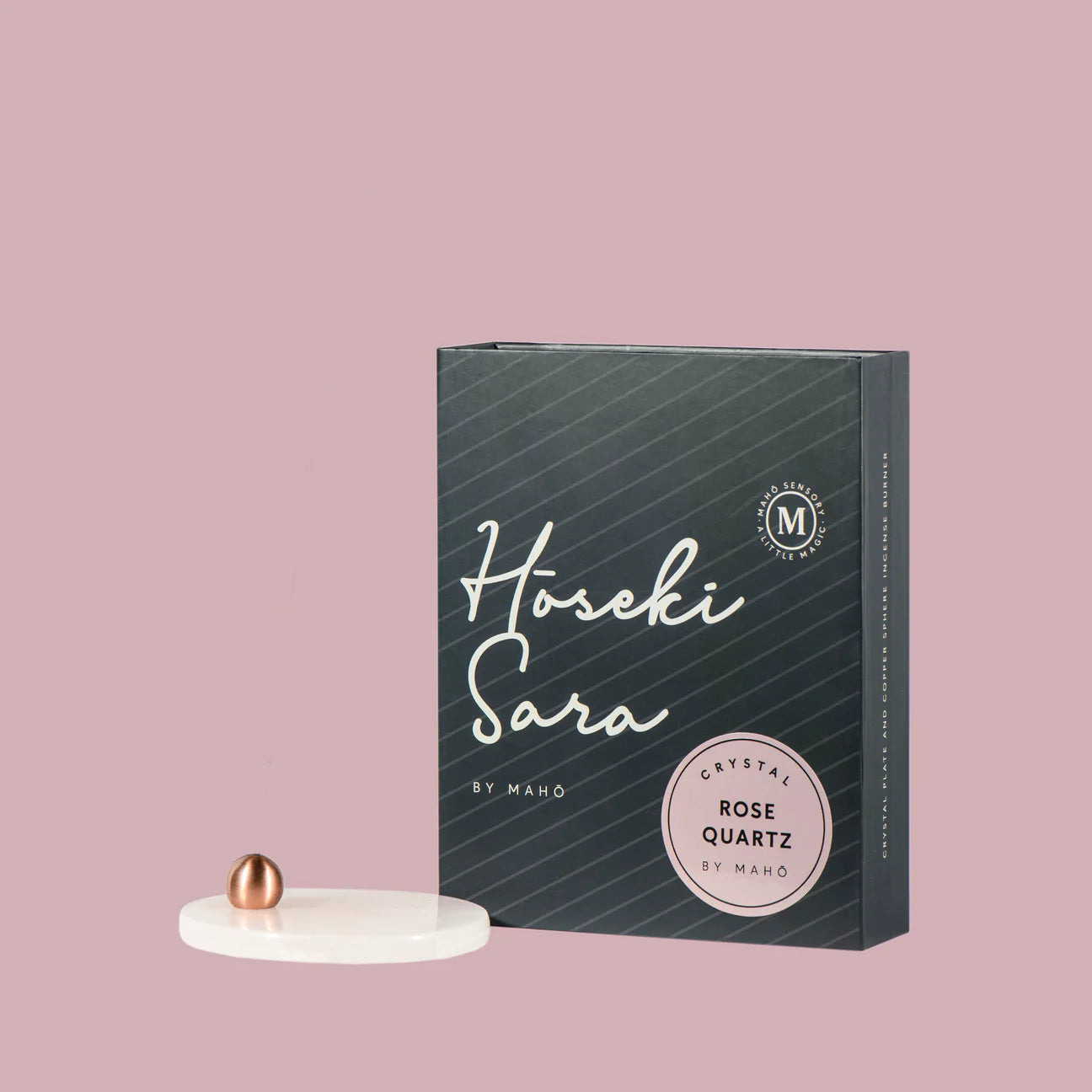 Brushed copper paired with Rose Quartz combines to create the signature Hōseki sara by MAHŌ--an ethereal burning kit.