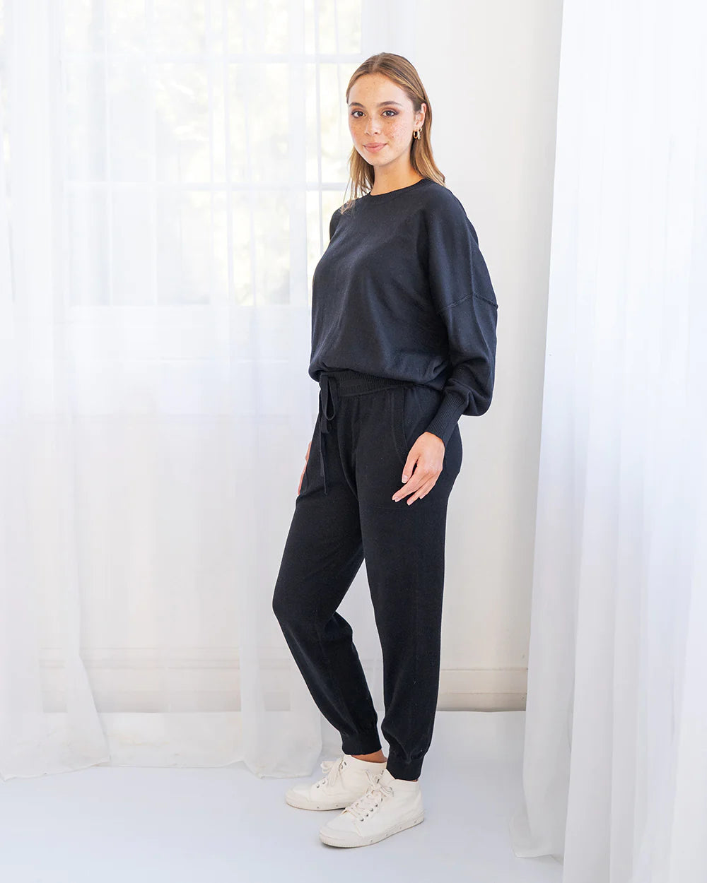 The Ivy Track Pants by Arlington Milne are a jogger leg pant crafted from a luxurious cotton cashmere blend, offering the perfect combination of softness and durability. The elastic ribbed waist, completed with a knitted drawcord, ensures a customisable fit for all day wear. With ribbed welt pockets, this pant offers practicality without compromising on style. Whether you're lounging at home or running errands, the Ivy Track Pant is designed to keep you comfortable and chic throughout the day.