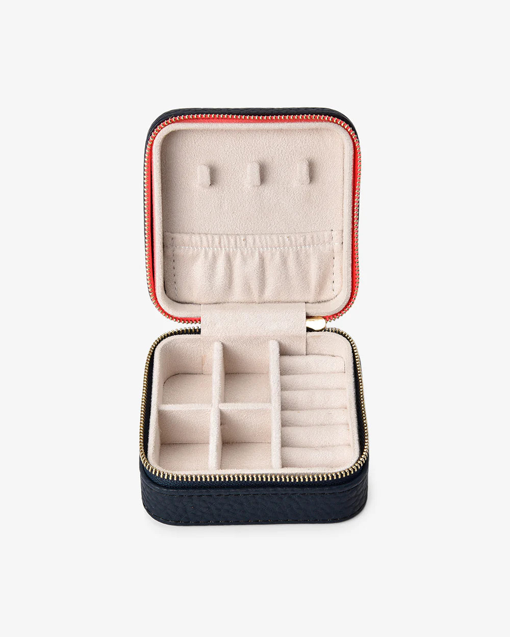 The Jewellery Case is the perfect companion for keeping your treasures organised and protected, whether at home or on the go. With thoughtful compartments for rings and hooks and slips for earrings or necklaces, it makes storing and accessing your favourite pieces effortless. Compact in size and crafted from premium PU with a fun two-tone zipper.