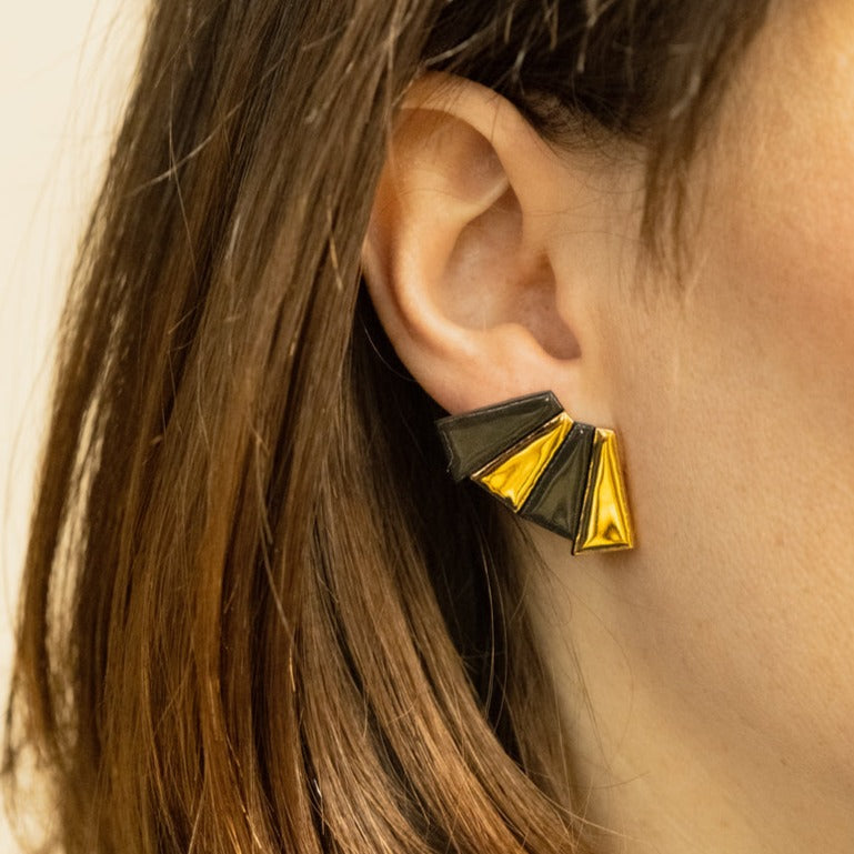 Inspired by the Late Night print from our clothing collaboration, these smart stud earrings take inspiration from Art Deco style, The Great Gatsby and Studio 54.