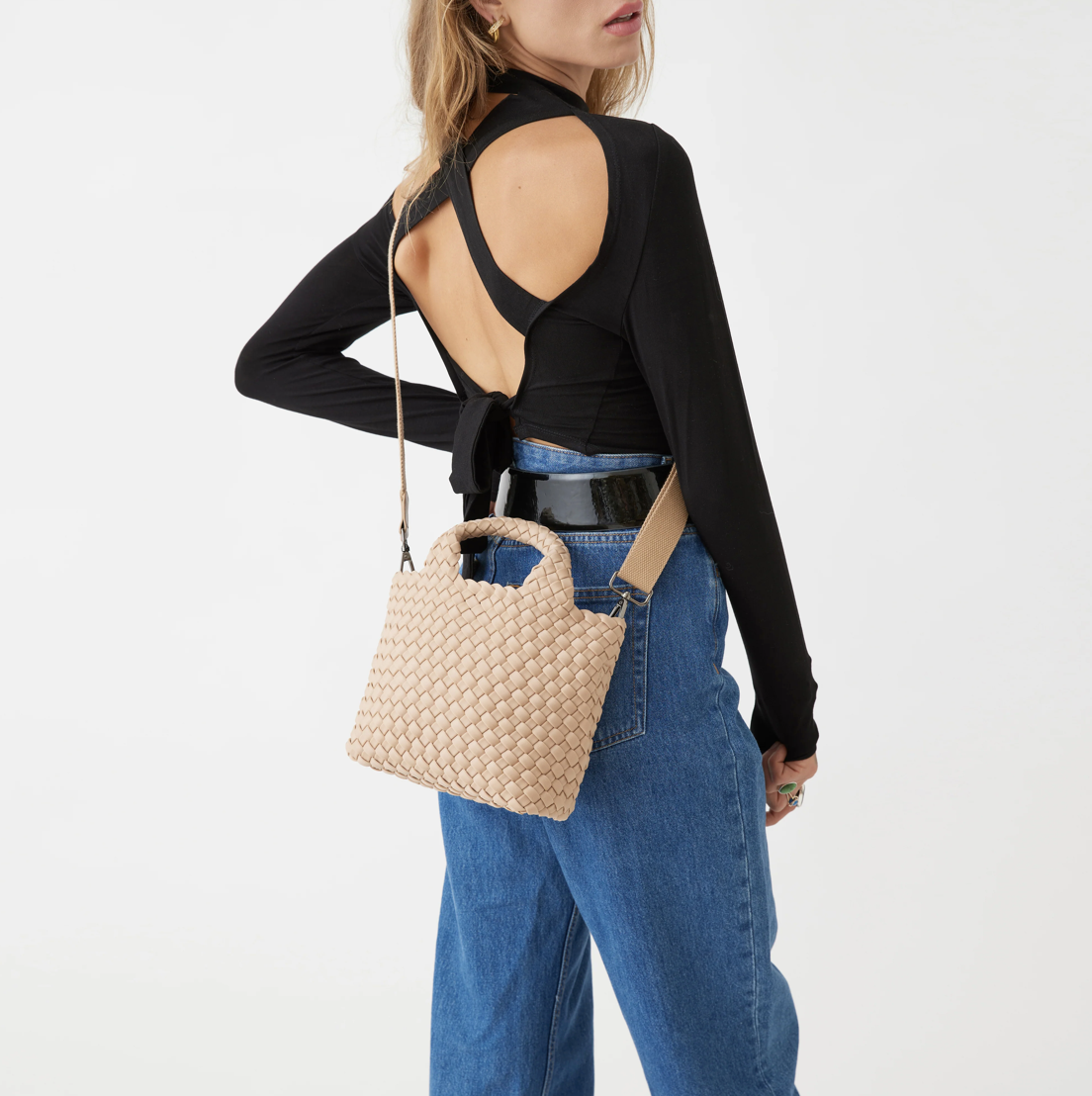 The Lupe Crossbody is the perfect blend of structure, style, and practicality. Handwoven from premium water-resistant neoprene, this bag is lightweight yet durable, making it a versatile companion for any occasion.