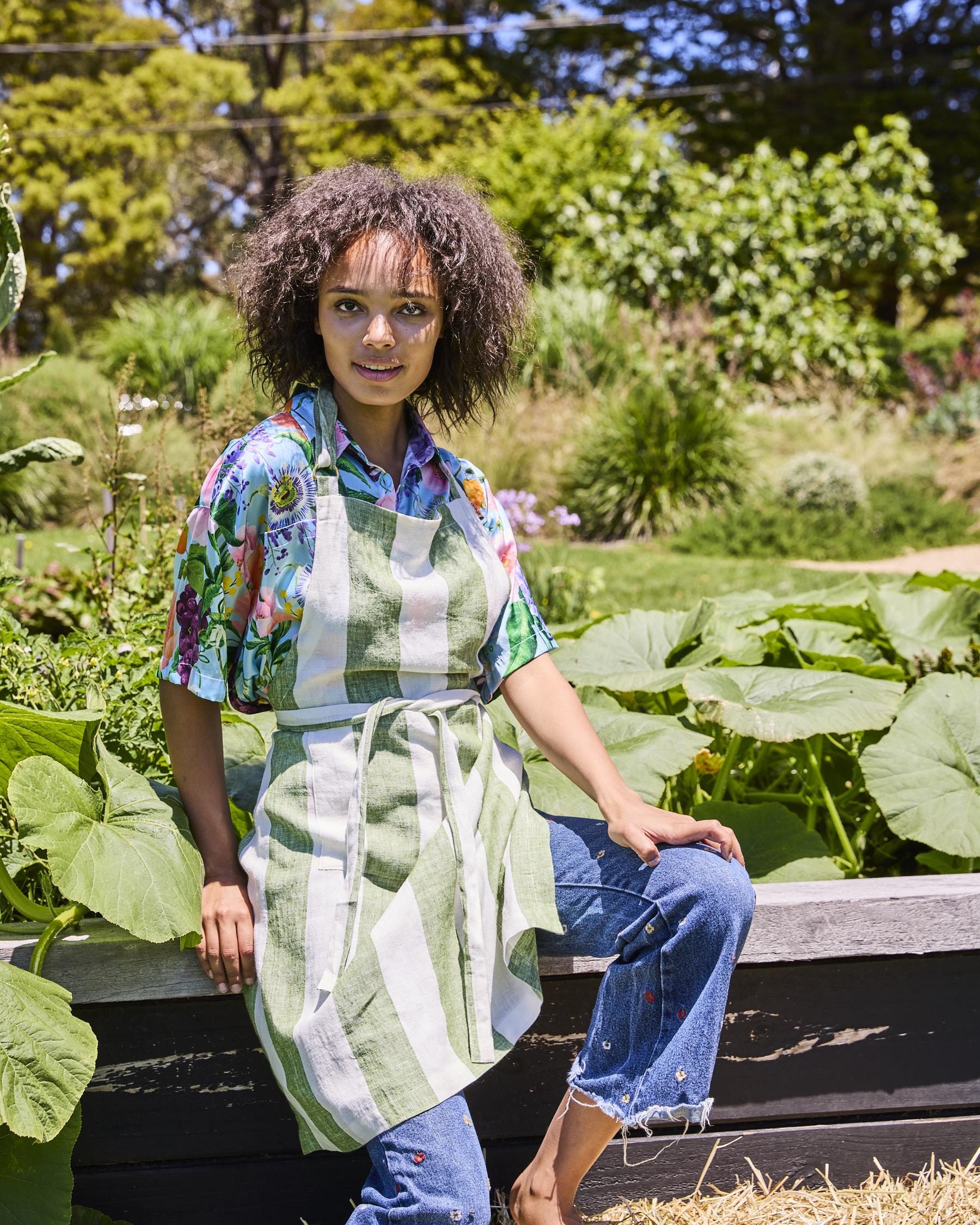 Whisk, stir, serve, and do it in effortless style. Woven from creamy white and moss green French flax linen, the Moss Stripe Apron is textural, durable, and effortlessly chic. Perfect for busy kitchens, casual cooking, or weekend brunches, it’s the apron that makes every culinary moment feel a little more spesh.