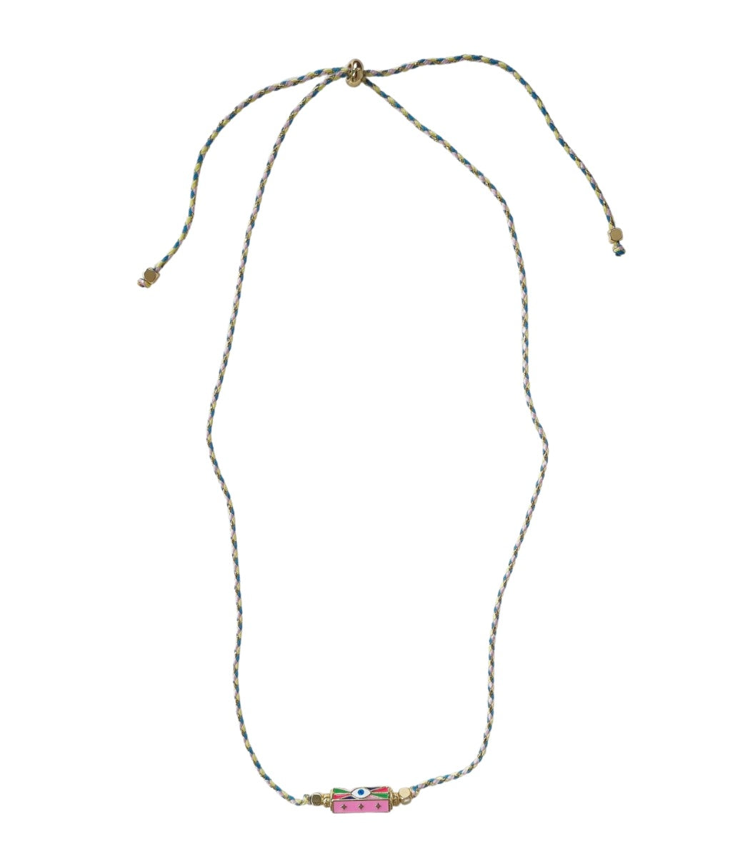 Elevate your accessory game with our Multi eye Cord adjustable necklace. This charming piece features a delicate cord adorned with beads and a striking green love charm. With an adjustable length, this bracelet is perfect for stacking with others or wearing alone as a statement piece.