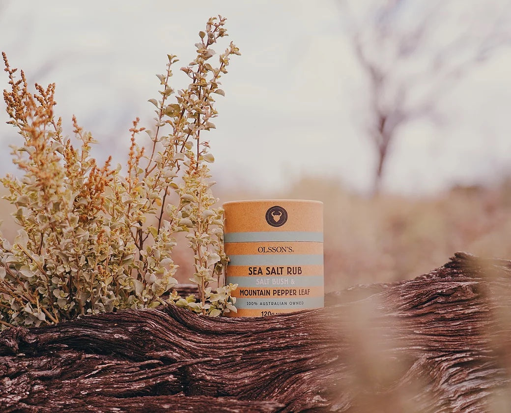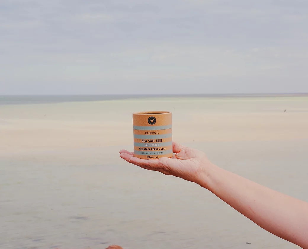 If Australia could be made into a Sea Salt Rub this would be the flavour. Made up of Australia handpicked Salt Bush, the taste of the ocean through the crisp Sea Salt Flakes and the aroma of our great Australian flora with the Mountain Pepper Leaf. Olsson’s have been working hard to reduce the use of plastic packaging and these kraft canisters are the best of both worlds, stylish yet eco-friendly.