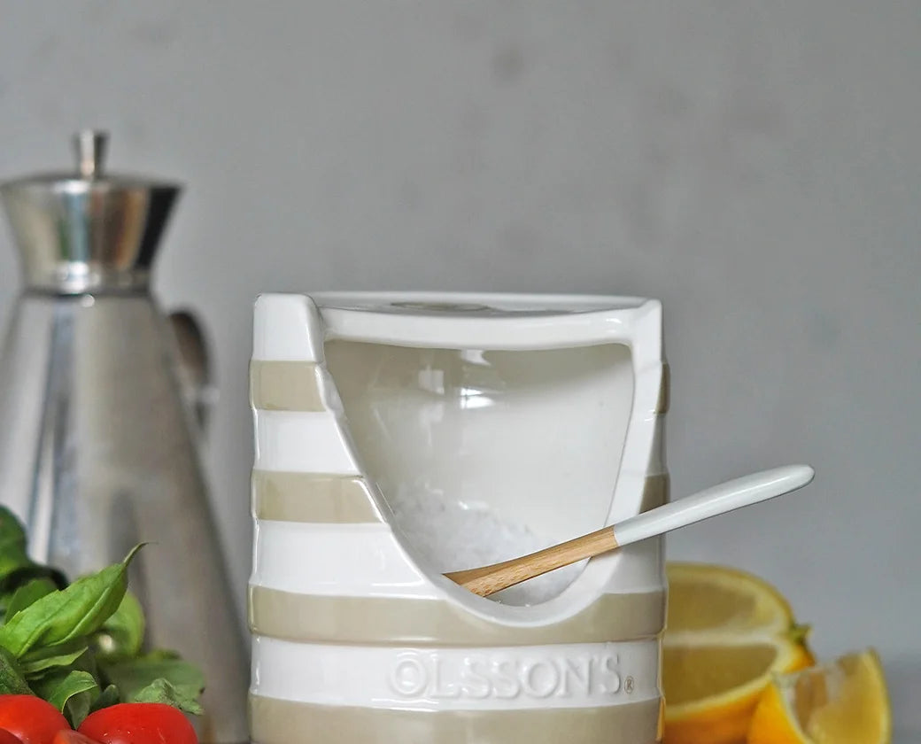 Australia’s oldest family-owned and operated salt producer, Olsson’s, has launched two new products; Salt Keeper and Pinch Pot. Crafted with the same attention to detail as Olsson’s beloved striped jars and designed to hold any of Olsson's premium salts, these new storage solutions have been designed to bring style and functionality to the home kitchen and bar.