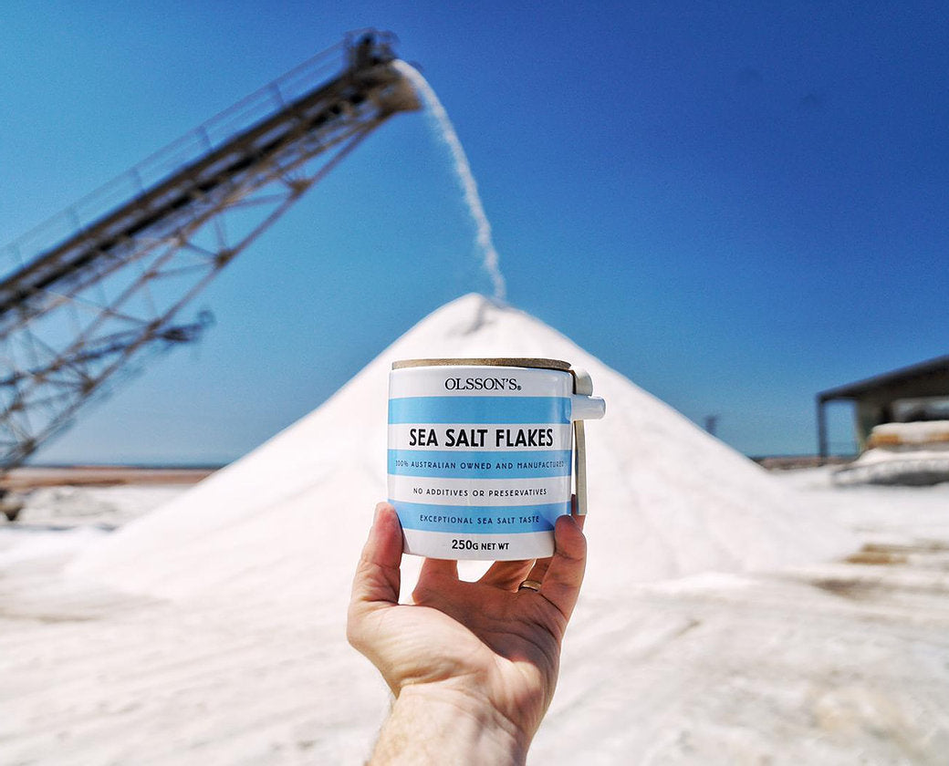 Olsson's sea salt flakes, sourced from the Eyre Peninsula, South Australia, have a fresh flavour evocative of the pure ocean waters from which they are made. The salt is hand-harvested and retains many natural marine minerals.