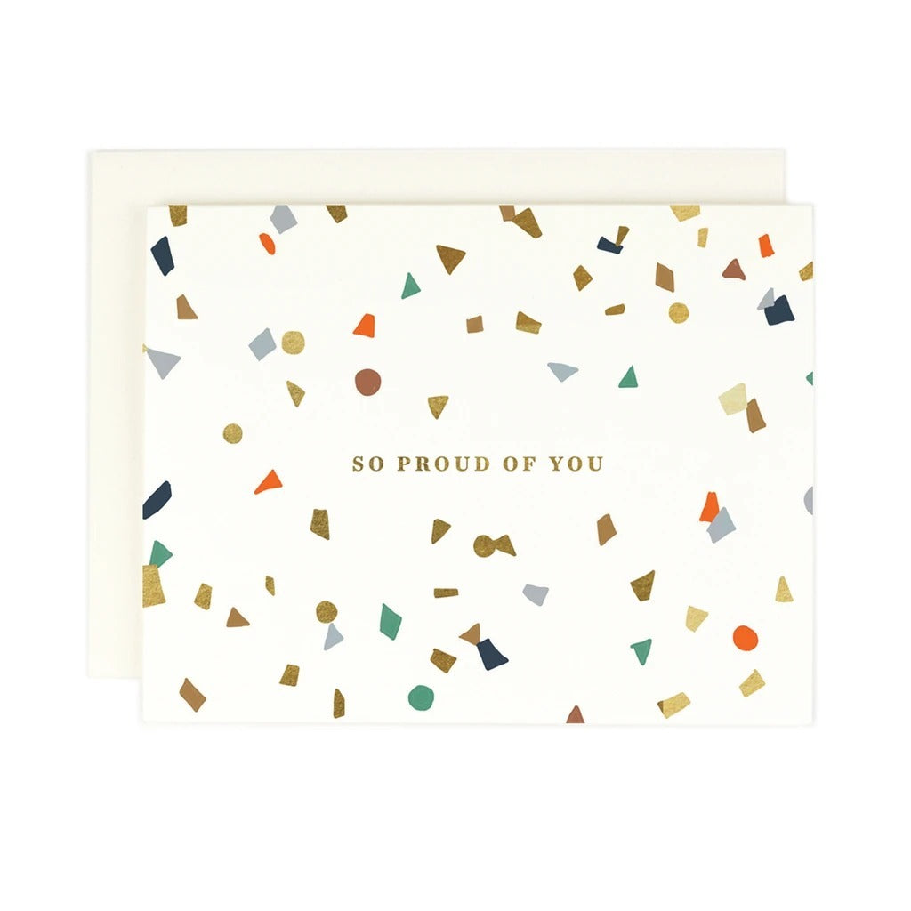 FSC Certified. Beautiful warm white cover paper with silver foil accents. Blank interior. Includes coordinating envelope and plastic sleeve. Made in USA.