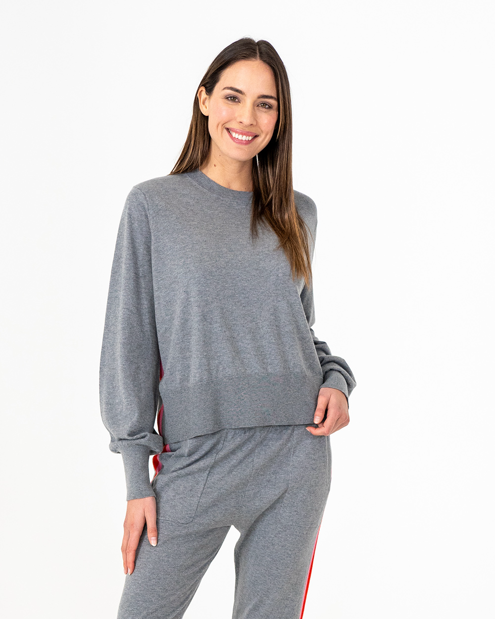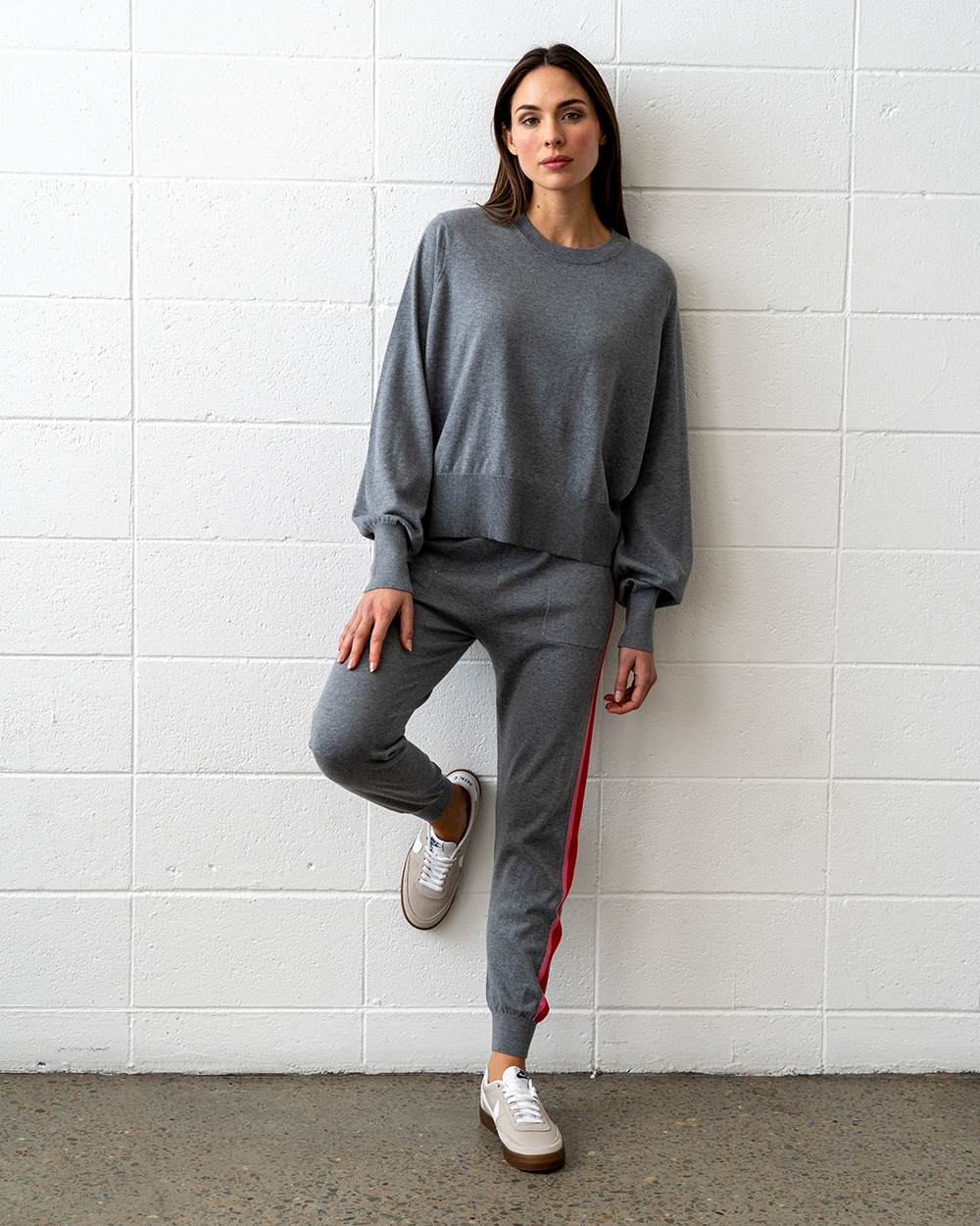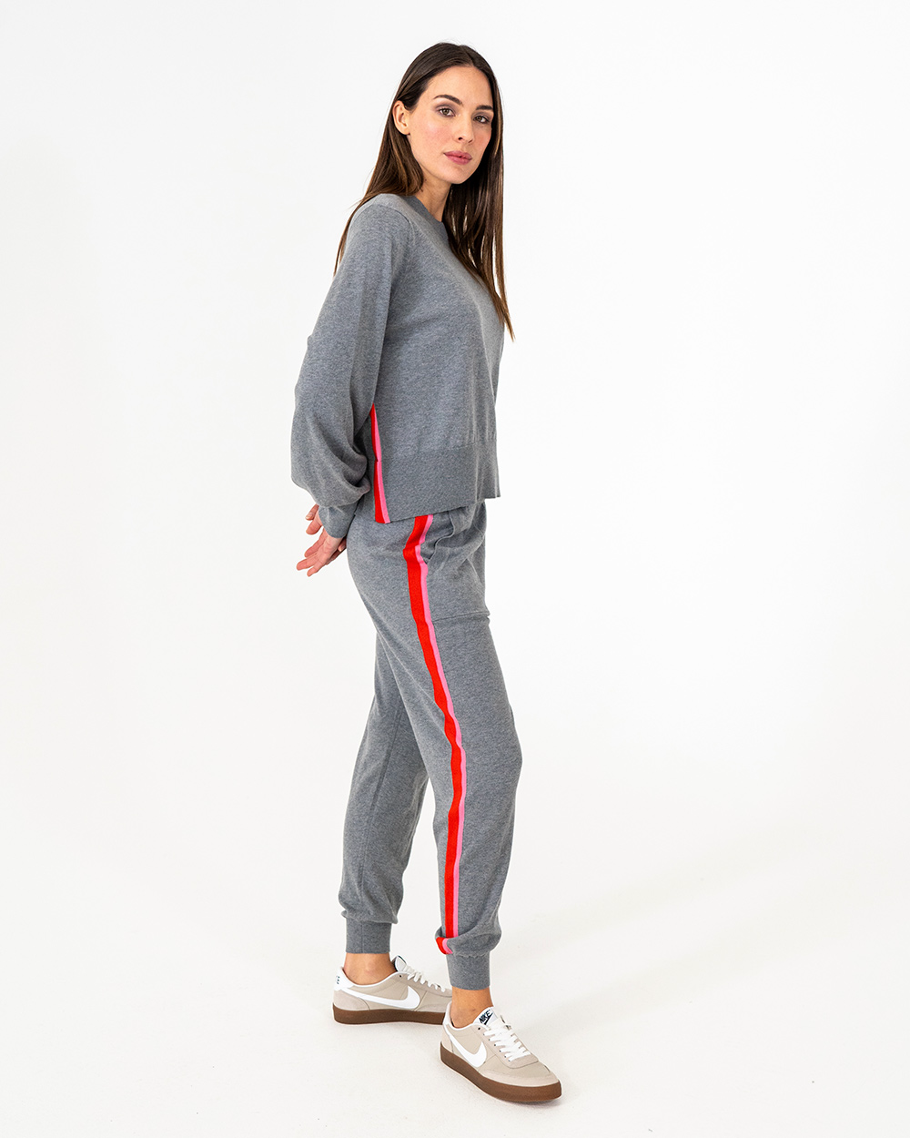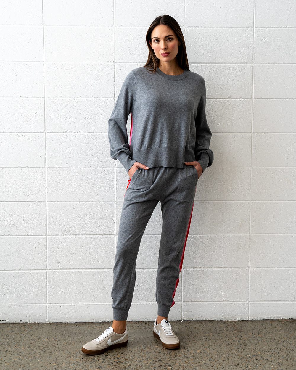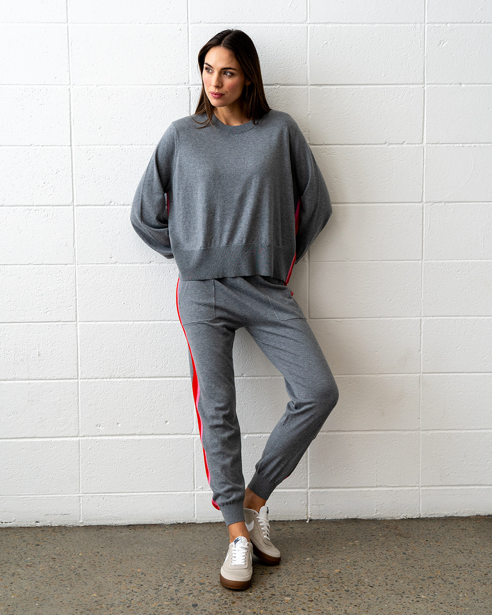 We absolutely LOVE the new season loungewear from Arlington Milne. In a fabulous light grey with pink & red speed stripes down the side of the pant these track pants will be a staple item in your wardrobe this Autumn / Winter.