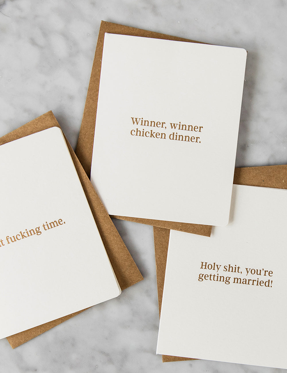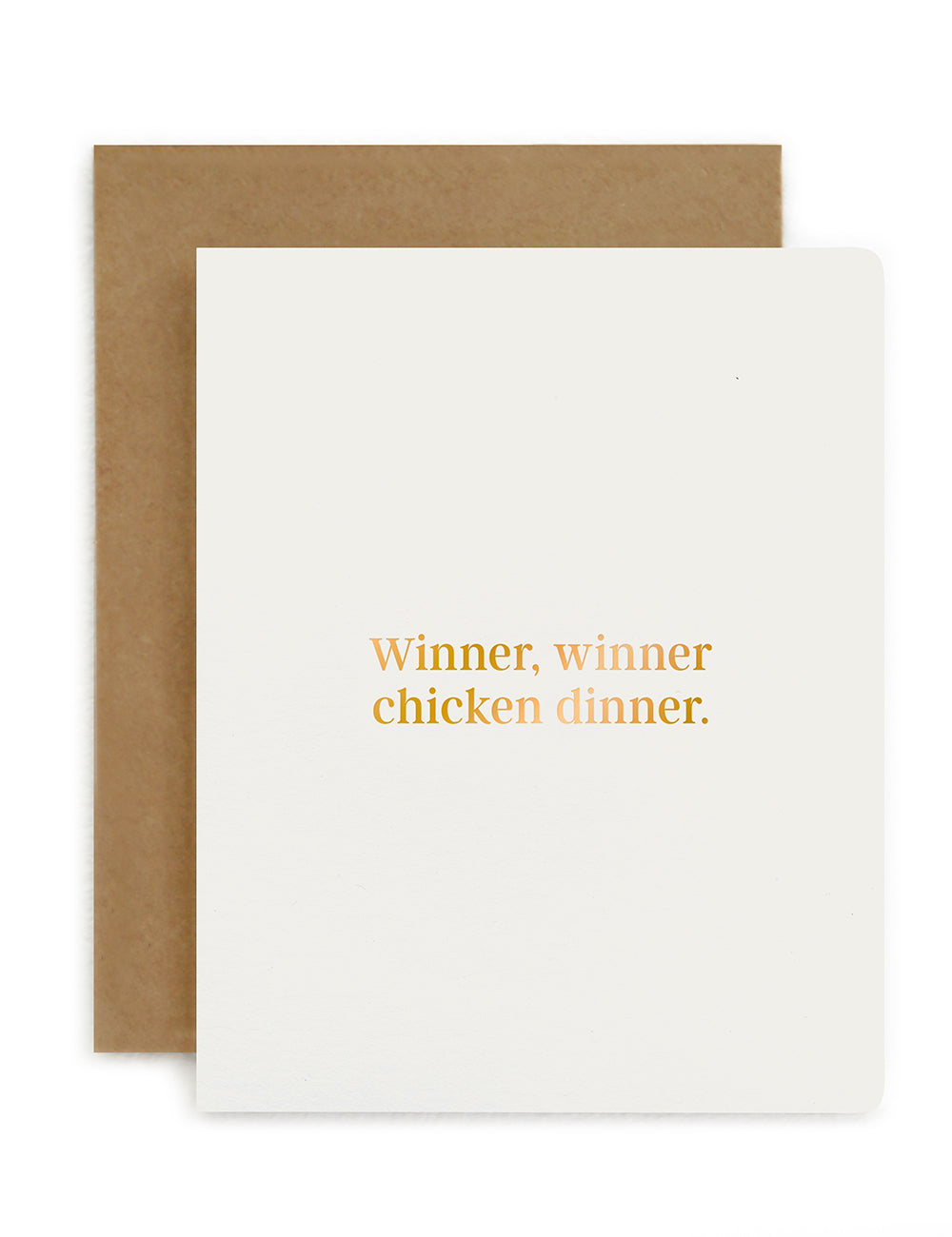 Letterpress hot foil printed "Winner, winner chicken dinner" card.