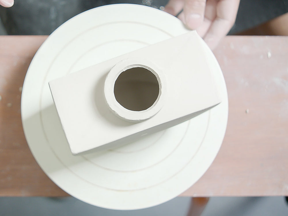 Working with porcelain, Erin creates simple forms which are thoughtfully decorated with subtly-hued colour schemes and geometric pattern.