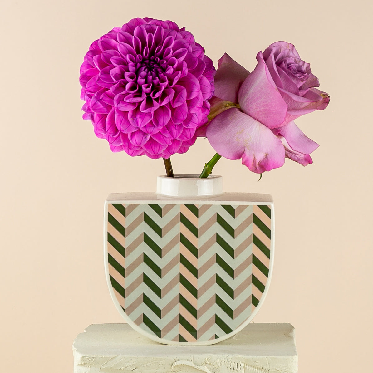 Hand crafted in an Australian studio; these art deco inspired vases are made from beautiful Australian porcelain and feature an original decal print created by Erin.